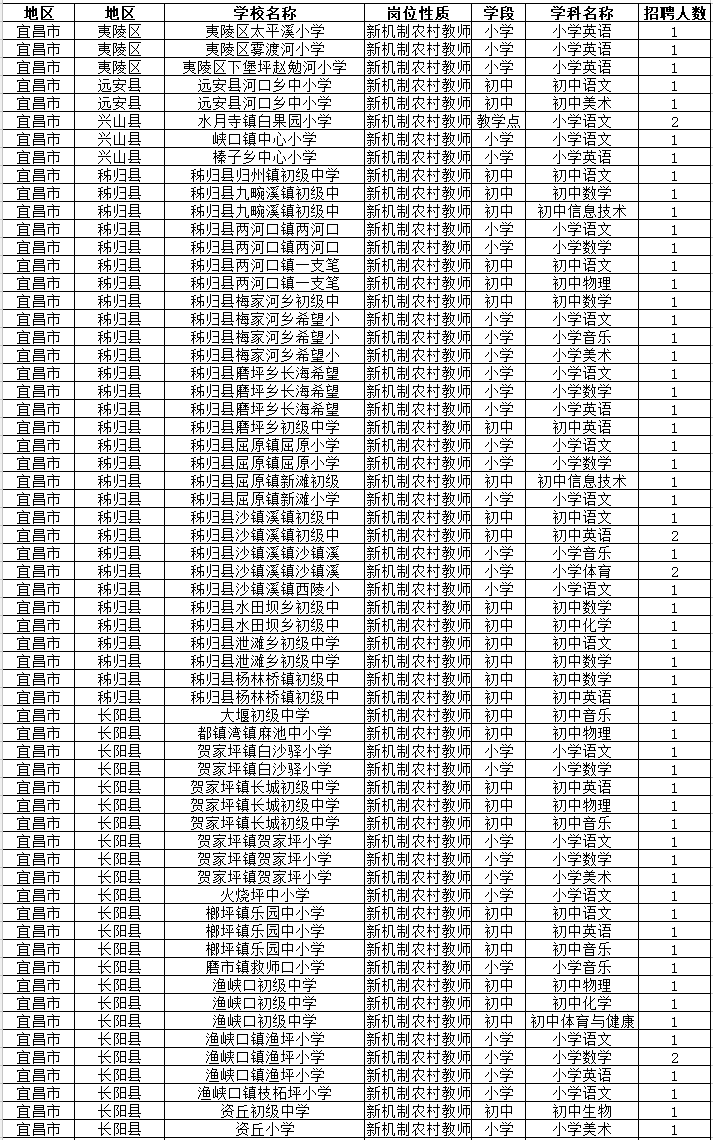 教师公开招聘具体岗位情况表
