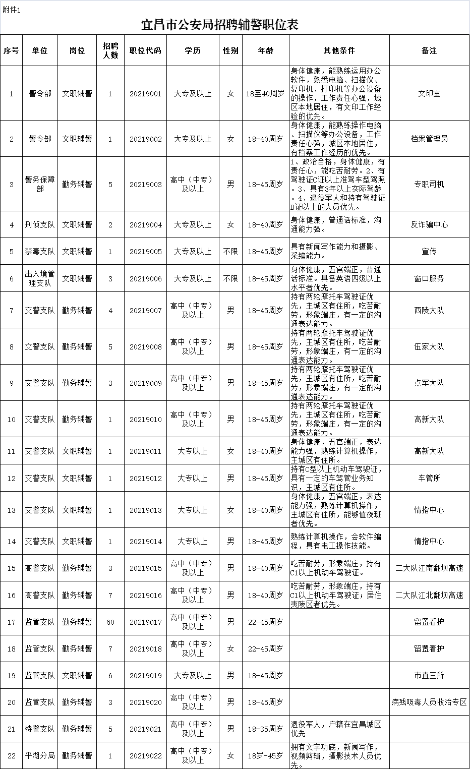 各职位具体条件详见《宜昌市公安局招聘辅警职位表》(附件1),各职位计算年龄截止时间均为2021年10月9日。